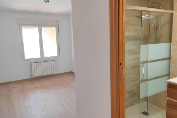 En la reforma de la vivienda hemos derribado y modificado el cuartos de baño y la cocina, modificando tuberías de agua y desagües, hemo realizado un cambio de bañera por plato de ducha. Por otro lado se han cambiado todos los radiadores de la vivienda y se ha instalado una nueva puerta de seguridad a la entrada de la vivienda en madera y la puerta de acceso a la terraza en aluminio blanco. Por ultimo se han sustituido todos los radiadores y se ha pintado la vivienda completa.